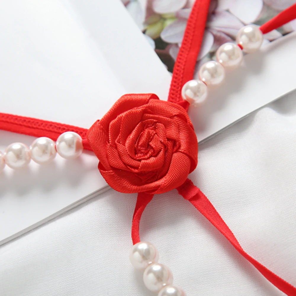 Сексуальное нижнее белье с жемчугом, женские стринги с цветком, Соблазнительные трусики, трусики с жемчугом