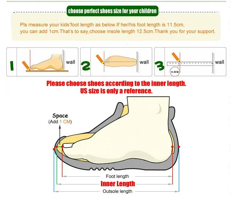 Дорогие друзья, при заказе детской обуви, вы должны Согласно длине стельки. (длина стельки = длина стопы + 1 см). В связи с освещением, яркостью монитора, настройкой и т. д., будут небольшие различия в цвете между изображениями и фактическими товарами, пожалуйста, поймите!
