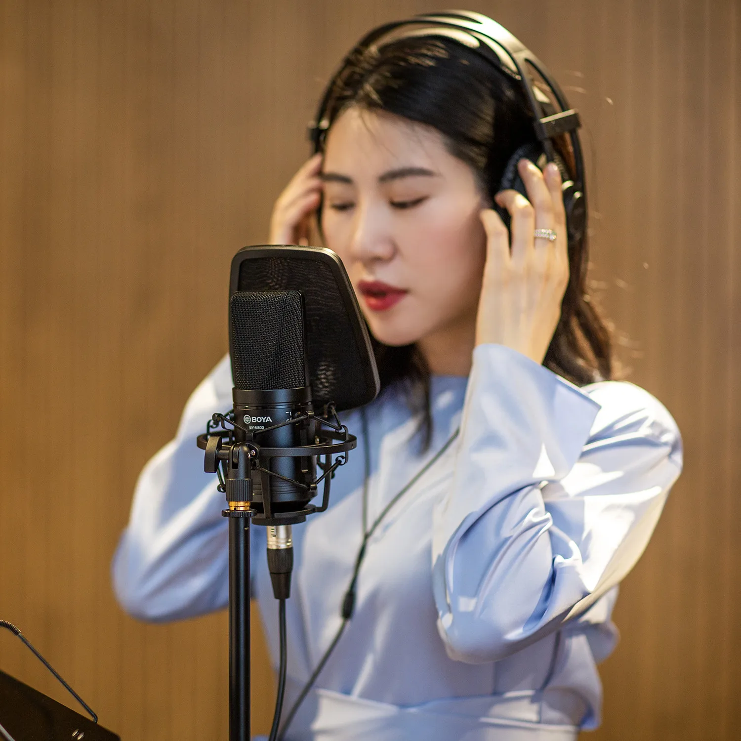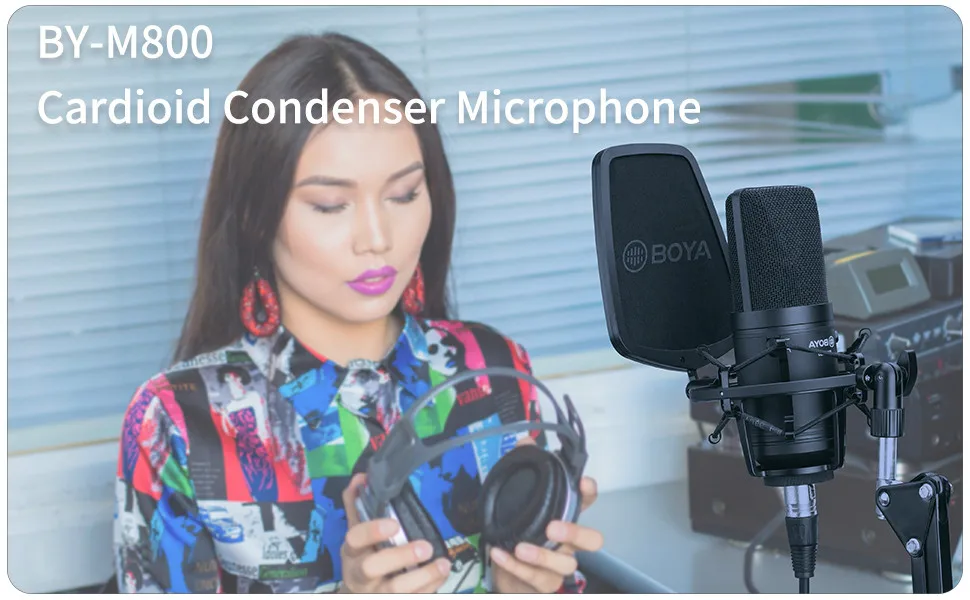 BOYA BY-M800-это большой кардиоидный конденсаторный микрофон с гладкой плоской диафрагмой,