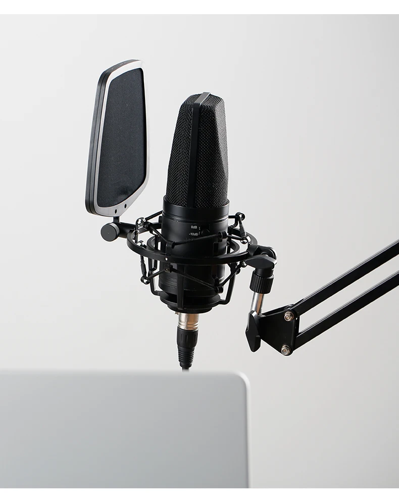 Он отличается кардиоидный узор отклоняет внеосевое звук,-10dB переключатель и 2-х Позиционный выключатель с низким вырезом, затемняющимся Светофильтром.