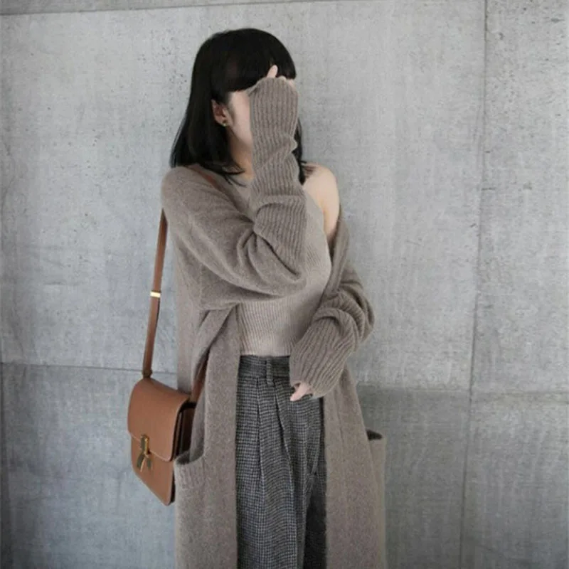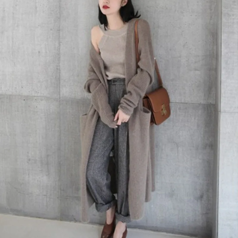 * Описание товара: новый осенний Женский Повседневный длинный рукав Свободный вязаный кардиган длинная верхняя одежда