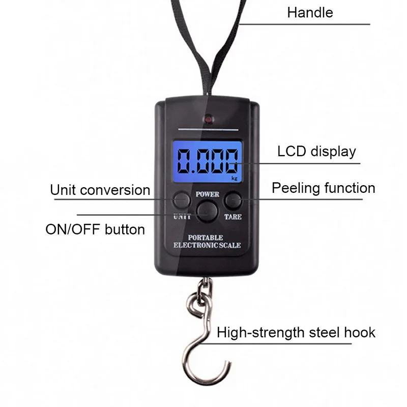 7> подвесной крючок: весы имеют прочный крючок для очень точного измерения различных типов сумок.