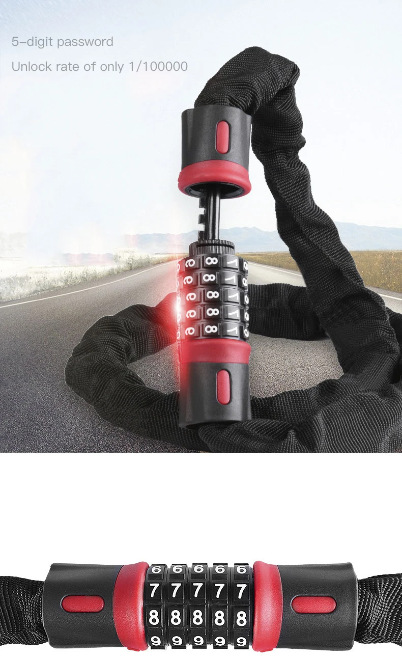 Name: Bicycle chain lock Specification: Length from 100mm to 150mm Color: Black Material: High quality manganese steel Features: hard and firmly lock body, wear-resistant and corrosion-resistant