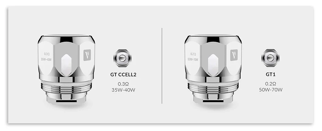 Размер: 22 мм (D) x 121 мм (H) Емкость: 2 мл (версия TPD)/3,5 мл (стандартная версия) Аккумулятор: встроенный аккумулятор емкостью 1800 мАч Катушка: GT сетка катушка 0,18 Ом (50 Вт-90 Вт), GT CCELL2 катушка 0.3ом (35 Вт-40 Вт) Нить: 510 нить Время зарядки: 1,0 часа