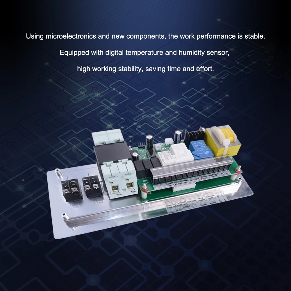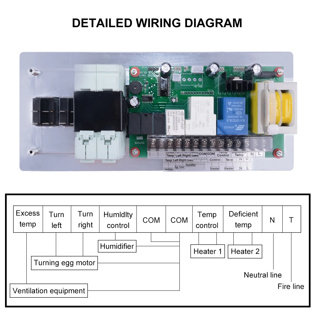 Особенности: Цифровое Отображение температуры, влажности и частоты поворота. Он применяет микрокомпьютерные чипы, чтобы иметь сильную защиту от помех и высокую стабильную производительность; Датчик температуры применяет высокоточный датчик, чтобы иметь высокую точность сбора температуры и широкий диапазон температур; Он применяет высокоэффективный датчик влажности для высокой точности, чтобы эффективно обеспечить прочность и надежность. Он имеет дизайн удобных для пользователя четырех экранов для дисплея, включая два экранов, отображающих температуру и влажность инкубатора и два других экранов, показывающих время поворота яйца и инкубационные дни, нажимая кнопки и показывая заданная температура и влажность при нажатии клавиш. И шесть видов инкубационных режимов для пользовательского определения, курица, утка, гусь, голубь и черный член доступны для выбора.