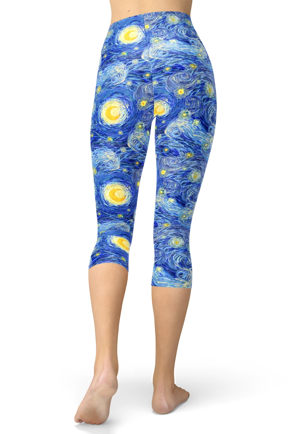 Женские Капри с абстрактным рисунком Sun Sky, мягкие синие желтые облегающие леггинсы с начесом и бабочкой для фитнеса, лето 2019