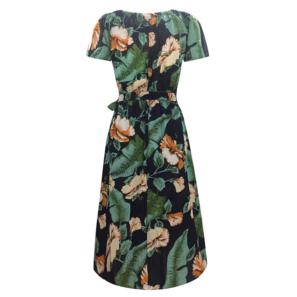 Женское повседневное короткое пляжное платье с вырезом лодочкой и оборками с открытыми плечами и цветочным принтом