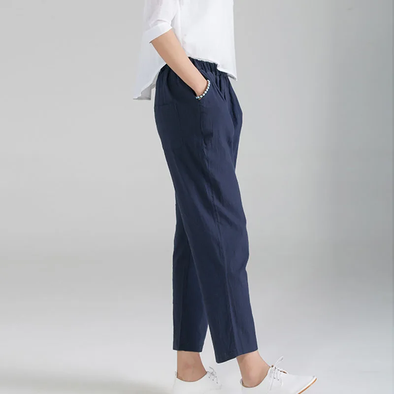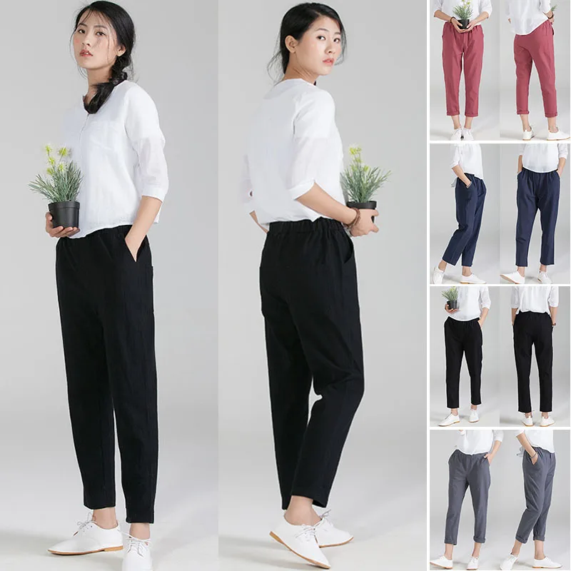 *Item Description: Solid Color; Cotton+Linen; Loose; Slim; Casual; Harem Pants; Trousers