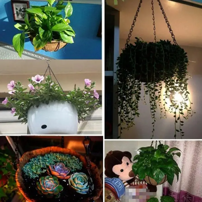 Подвесная цепь легко заменить эти хлипкие белые или зеленые пластиковые крючки и прикрепить их, чтобы обеспечить безопасность вашего сада от любых погодных условий снаружи. И чтобы ваши комнатные растения не падали и не портили ковер.