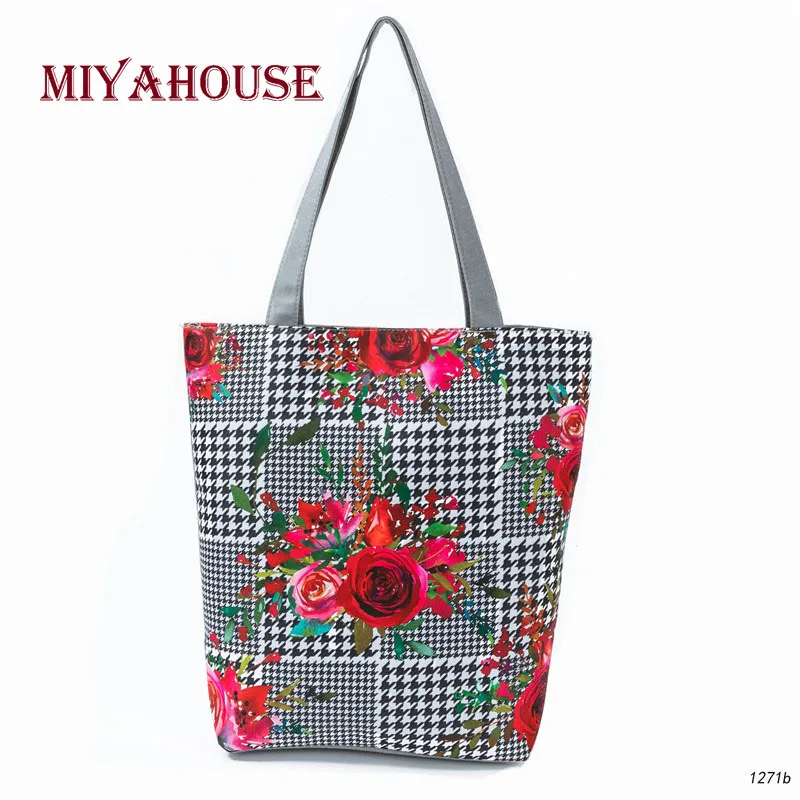 Miyahouse дешевая многоразовая Складная холщовая Женская хозяйственная сумка-тоут с цветочным дизайном дорожная сумка для хранения модная клетчатая сумка на плечо