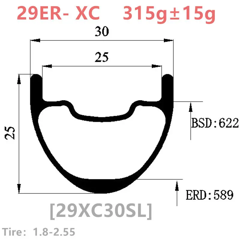 Вес обода: 310G ± 15g(XC)= 30*25 мм