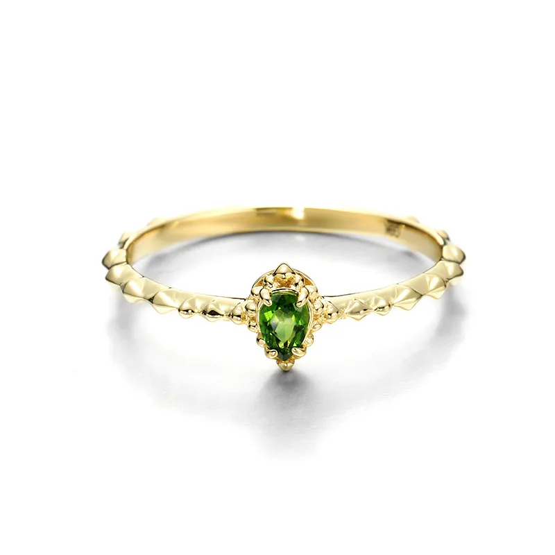 Барокко 9K Настоящее Желтое золото естественный диопсид кольца для женщин девушек готические подлинное твердое Драгоценное кольцо ювелирные изделия