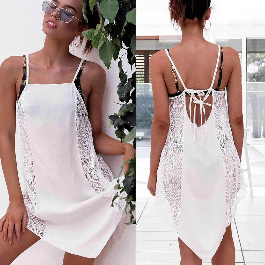 Особенности: однотонное, асимметричное, кружевное, перспективное, открытое, мини-платье Camis, свободное, без рукавов, сексуальное платье, сексуальная одежда, Летнее мини-платье, летнее Повседневное платье.