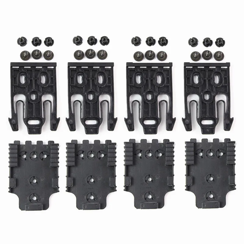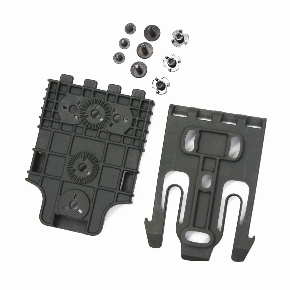 Мужская/Женская пара QLS, показанная здесь, может быть установлен на любой кобуре Safariland/комбинированной задней части, которая позволяет быстро заменить кобуру на другую заднюю часть, содержащую QLS 22 по мере необходимости. Две части, QLS 19 и QLS 22 быстро и легко сползают вместе и блокируют, образуя твердое крепление между кобурой и UBL, тактическая ножка, Молле жилет, автомобильный тире, прикроватный столик или в любом другом месте, где вы устанавливаете пластину приемника.
