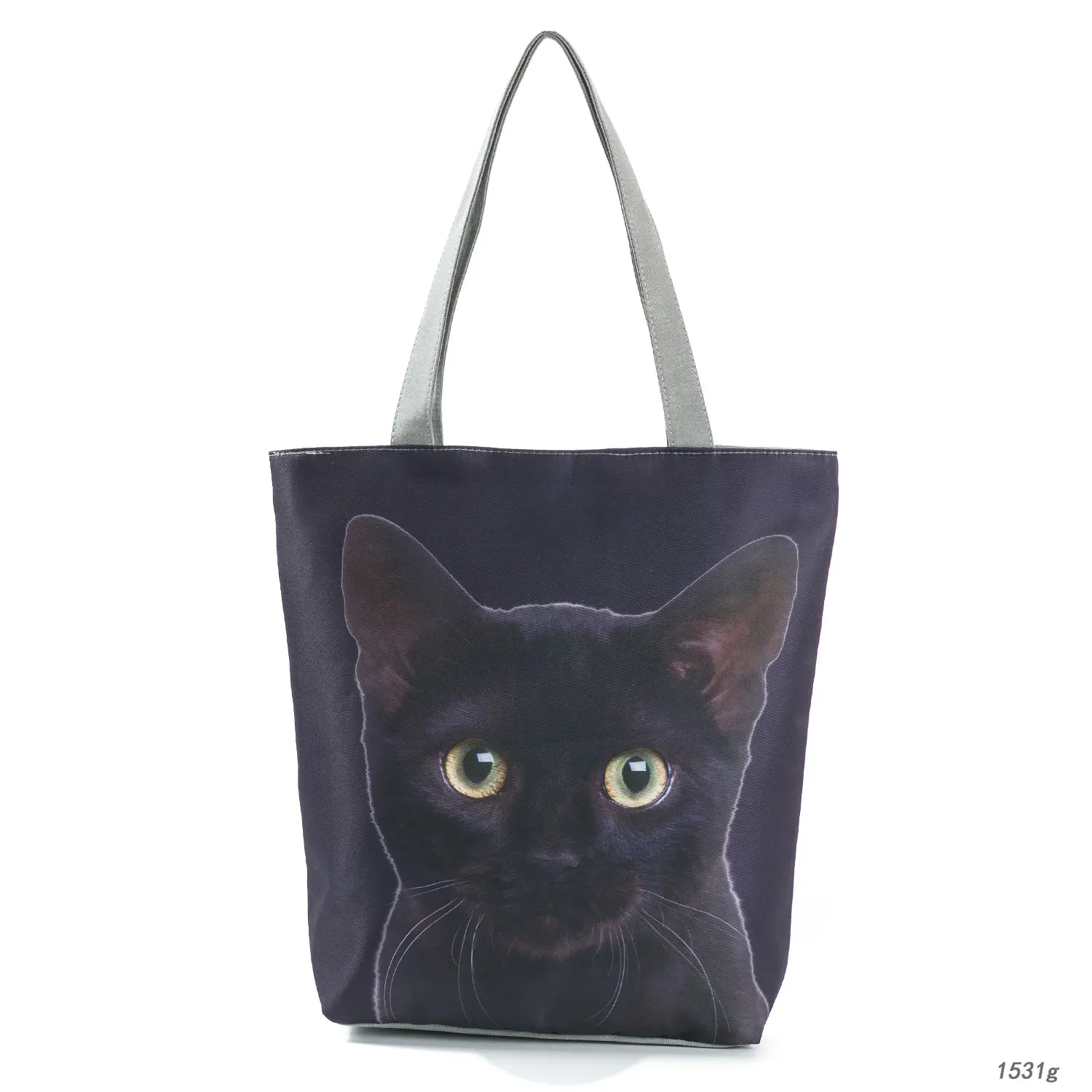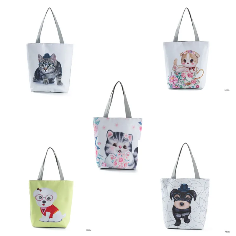 Miyahouse милая сумка с принтом кота и собаки, Женская Холщовая Сумка, Пляжная Повседневная сумка на плечо