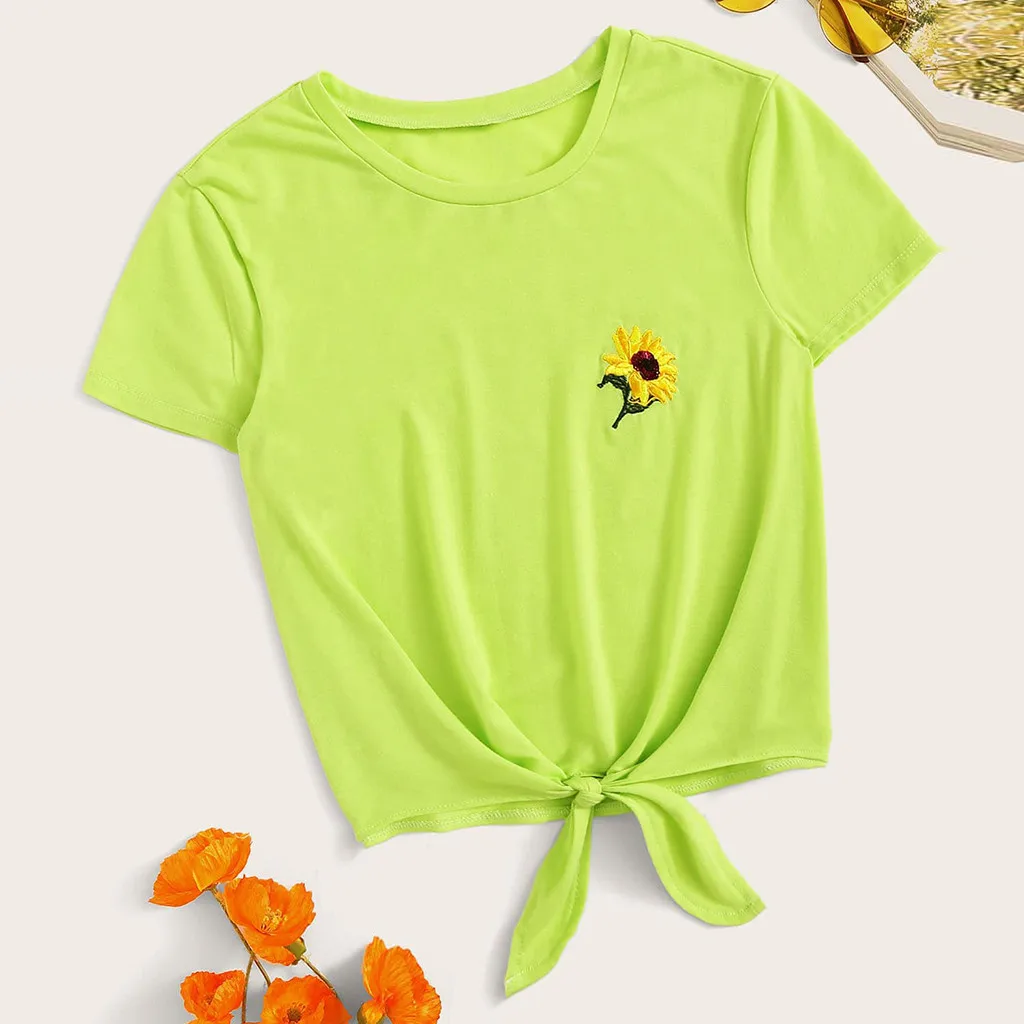 Женский пуловер с коротким рукавом, цветочным принтом и круглым вырезом, большие размеры
