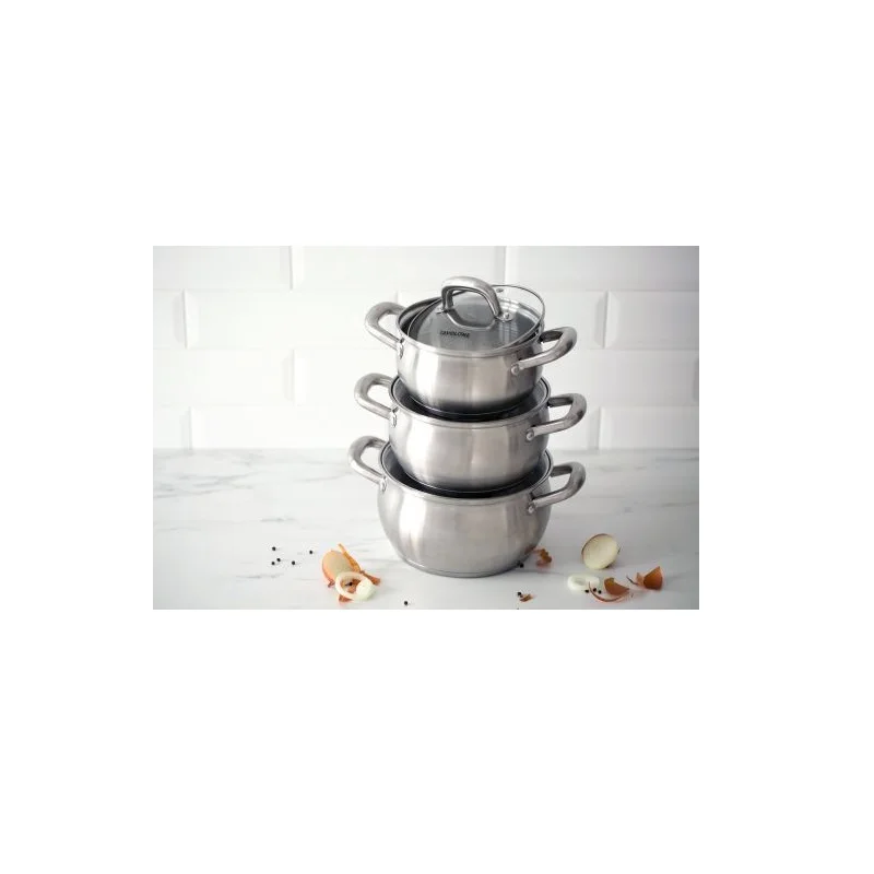 Набор кастрюль станет отличным дополнением к набору кухонной утвари. С его приобретением приготовление ваших любимых блюд перейдет на качественно новый уровень и вы сможете воплотить в жизнь любые кулинарные идеи. В комплект входят три кастрюли с крышками. Набор многофункционален и удобен в использовании, подойдет для варки супов, приготовления блюд из мяса и рыбы, гарниров, соусов т.д.