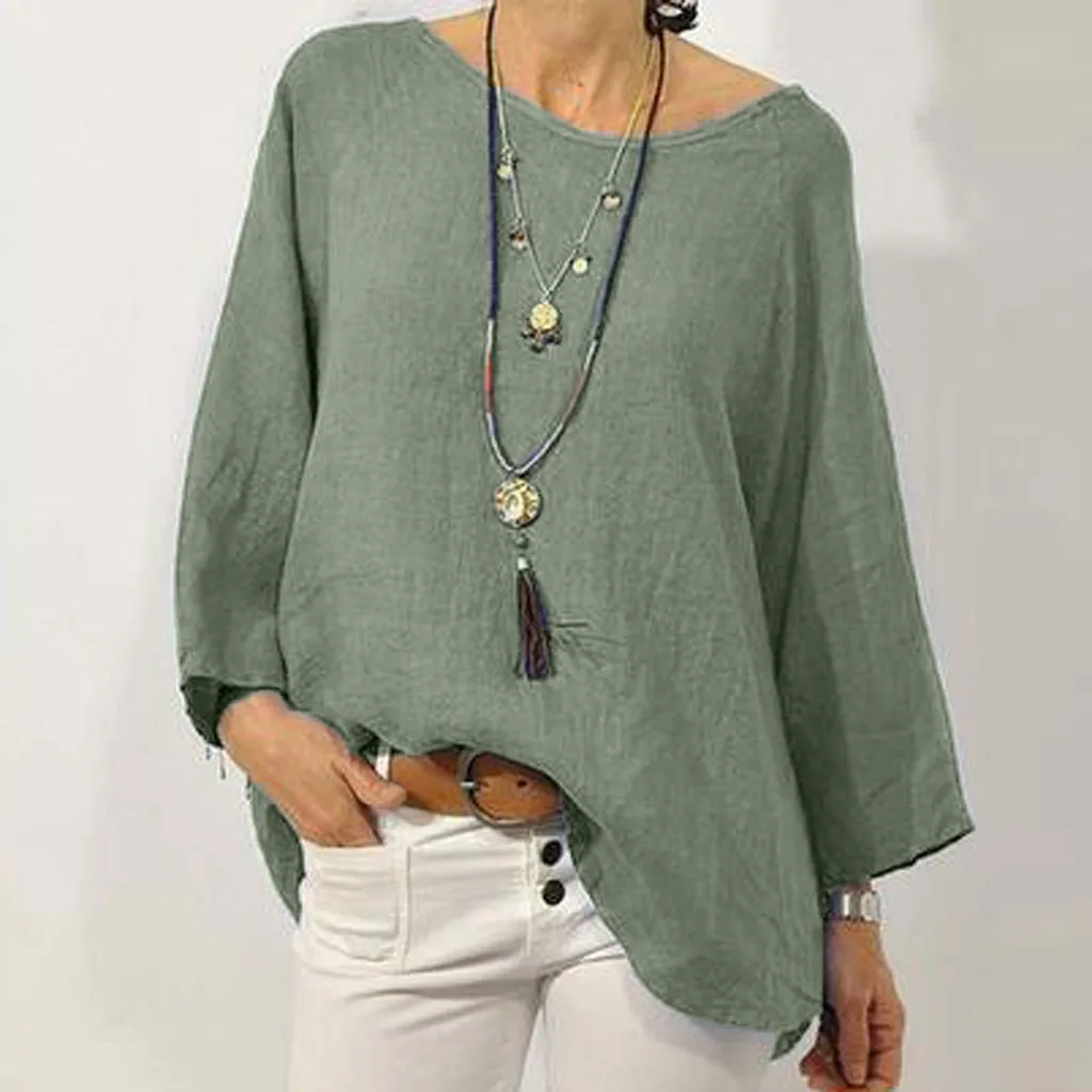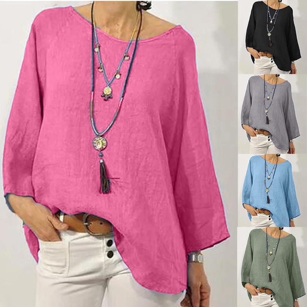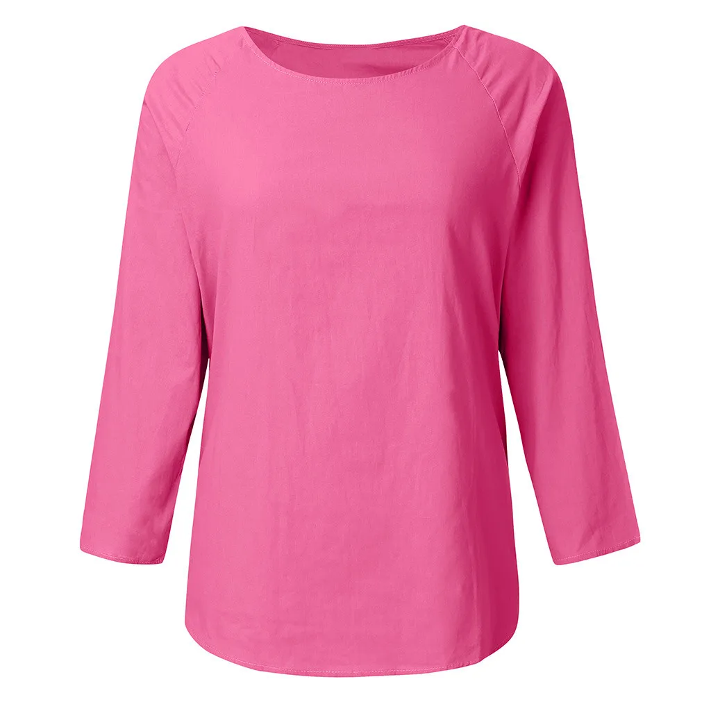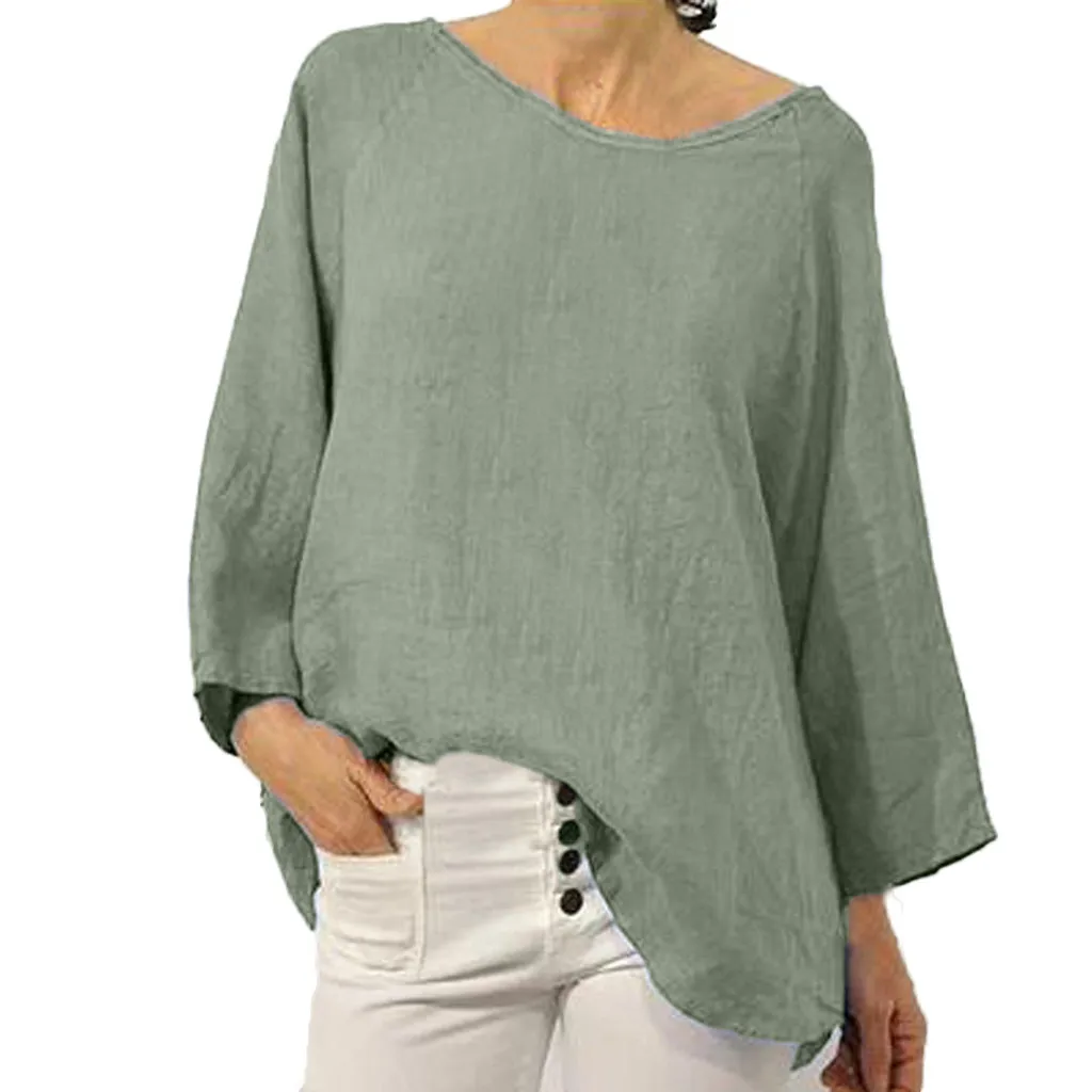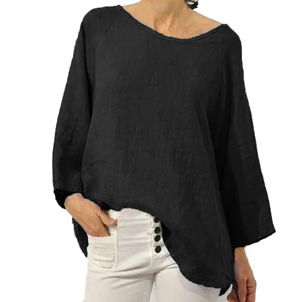 Женский летний модный однотонный топ из хлопка и льна