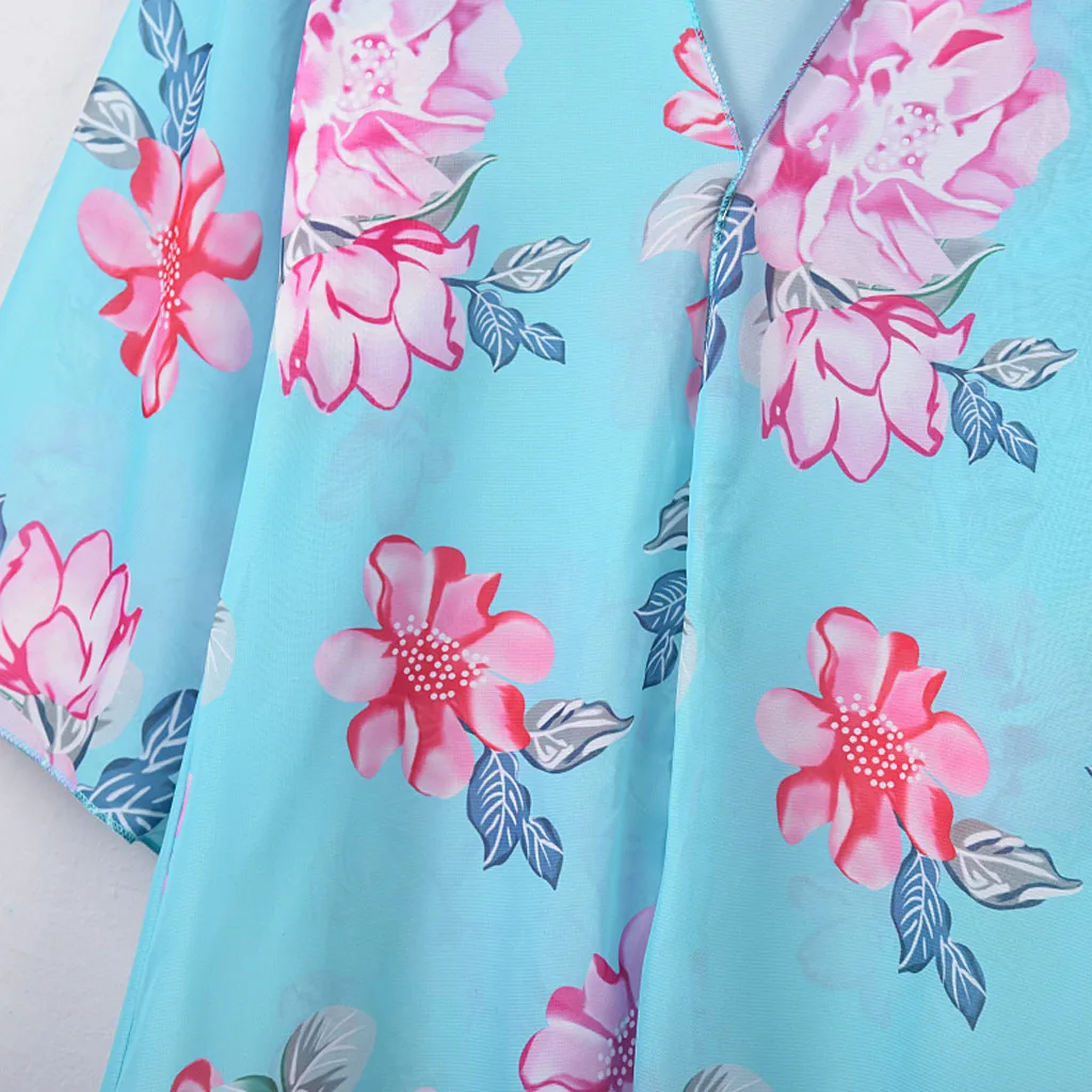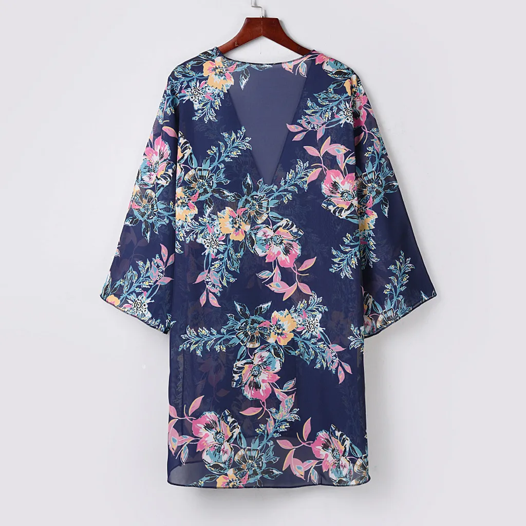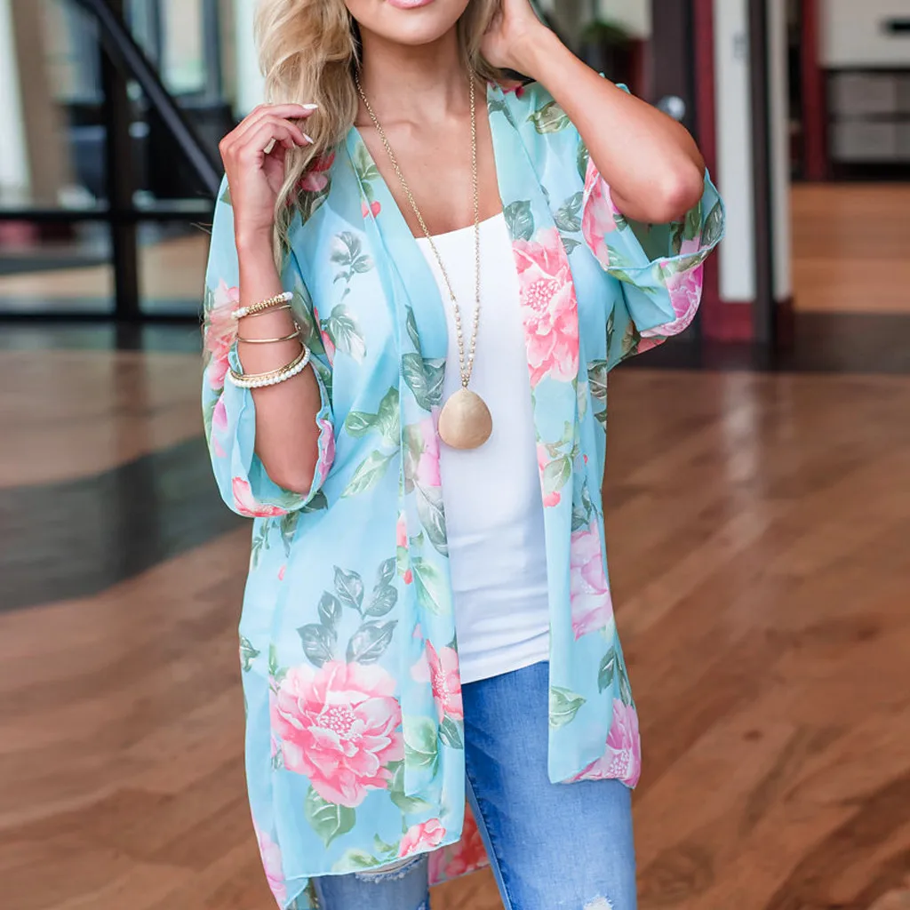 Женские шифона с рукавом до локтя, печать песчаный пляж халат легко Блузка Топы