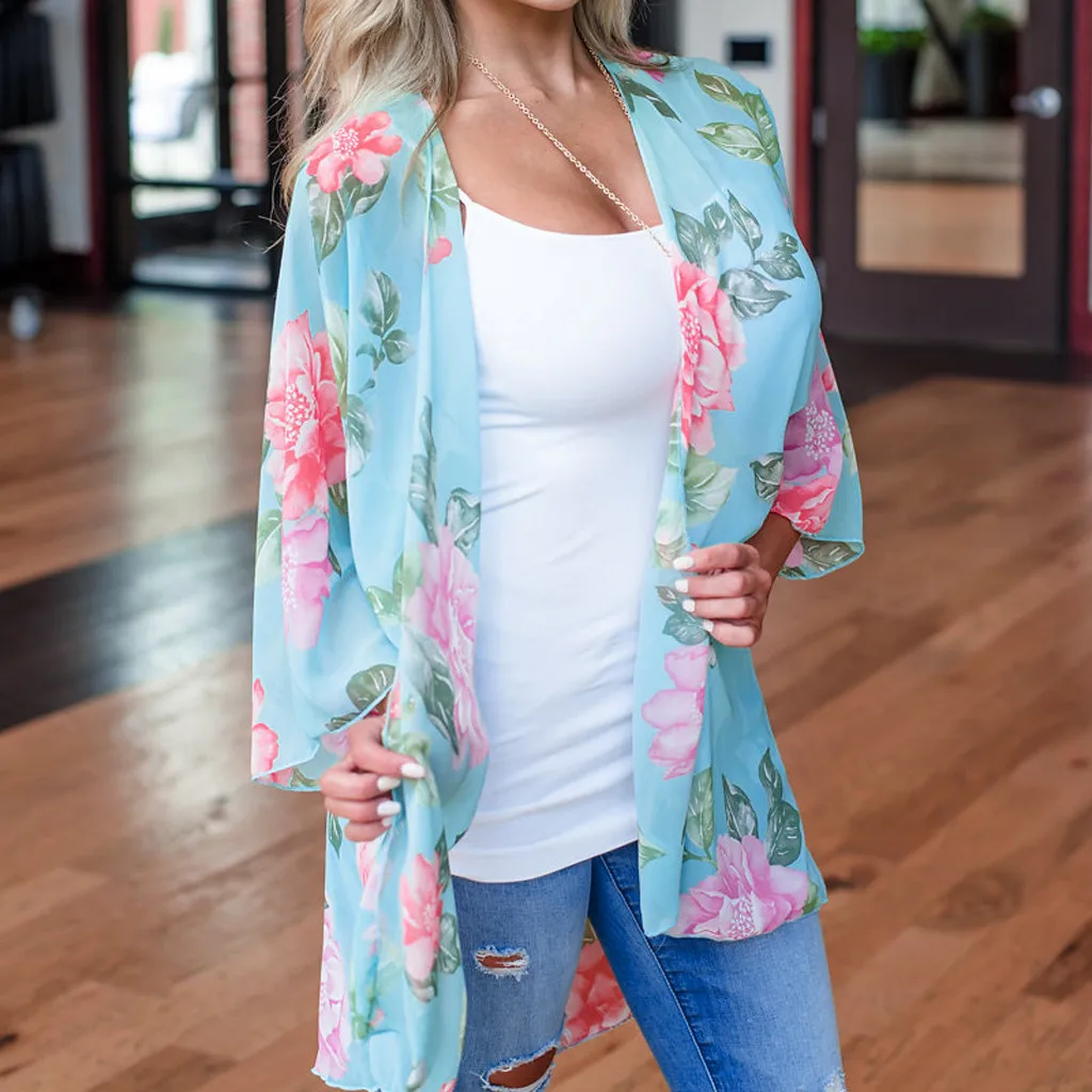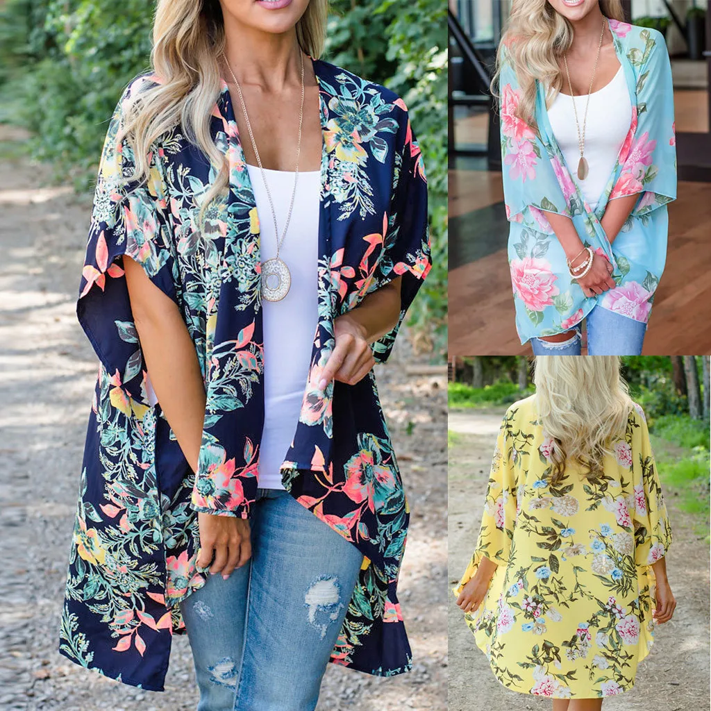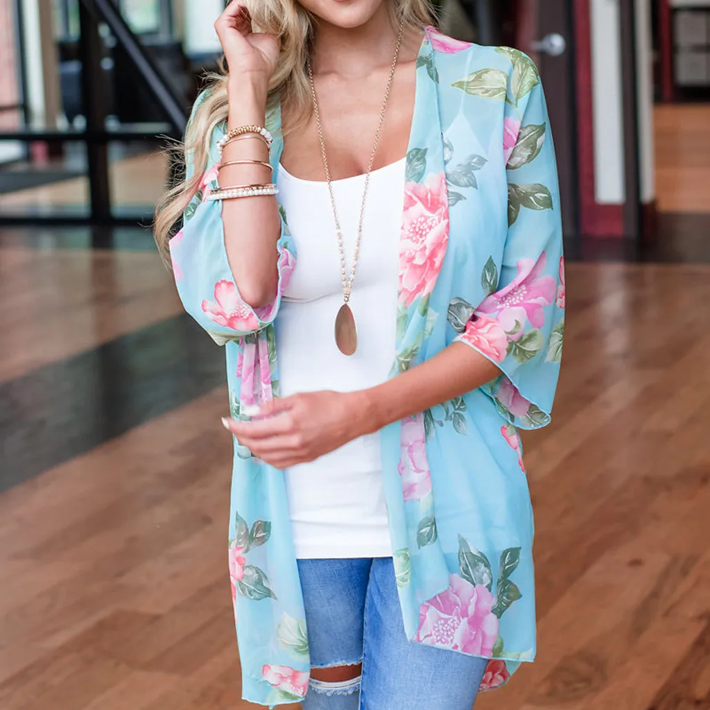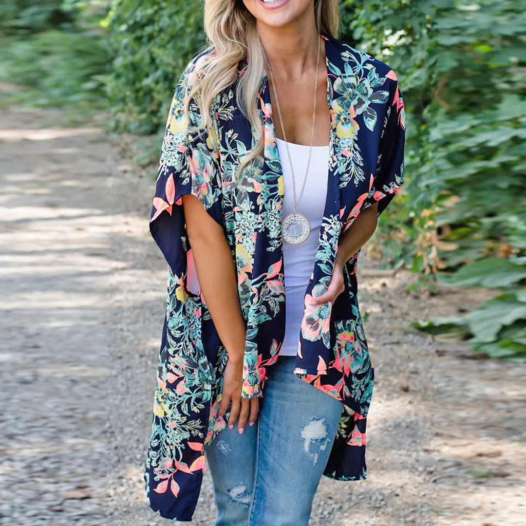 Женские шифона с рукавом до локтя, печать песчаный пляж халат легко Блузка Топы