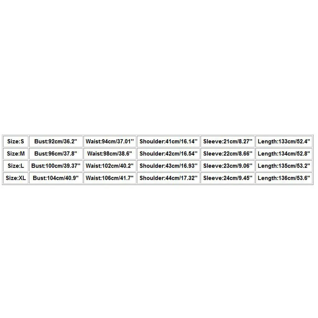 Размер Бюст Талия Плечо Рукав Длина S 92 см/36,2" 94 см/37,01'' 41 см/16,14'' 21 см/8,27'' 133 см/52,4" М 96 см/37,8" 98 см/38,6" 42 см/16,54'' 22 см/8,66'' 134 см/52,8" L 100 см/39,37'' 102 см/40,2" 43 см/16,93'' 23 см/9,06'' 135 см/53,2" XL 104 см/40,9" 106 см/41,7" 44 см/17,32'' 24 см/9,45'' 136 см/53,6"