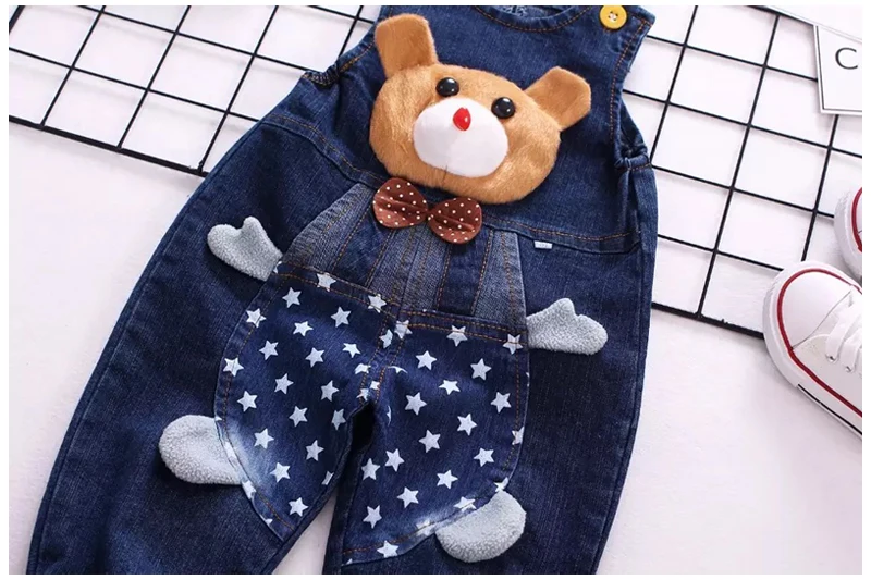 DIIMUU/Детские Модные осенние джинсы для мальчиков и девочек; Повседневные джинсовые комбинезоны; Детская одежда в стиле пэчворк с героями мультфильмов; Длинные брюки для От 1 до 3 лет