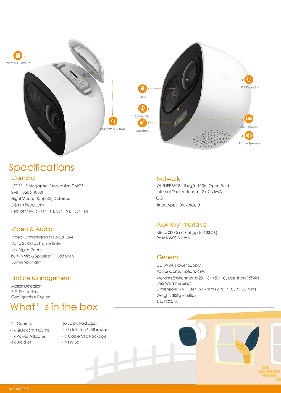1080P | Ночное видение | Активное сдерживание | Обнаружение PIR | Двусторонний разговор | IP65 защита от атмосферных воздействий | Облако