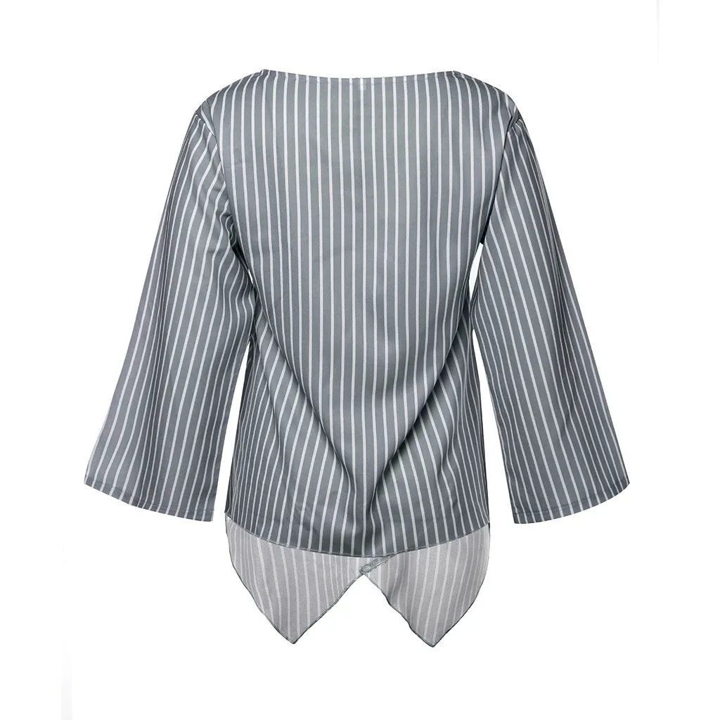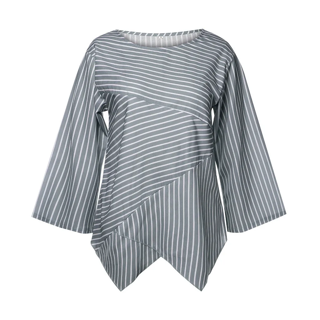 Модные женские повседневные топы с круглым вырезом, полосатая футболка с длинным рукавом