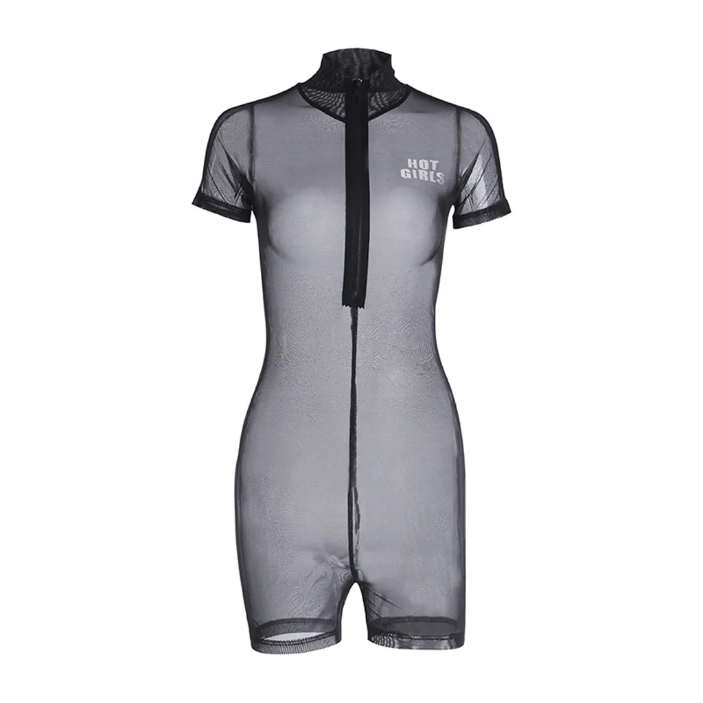 Модные женские сексуальные сетчатые спортивные комбинезоны с буквенным принтом на молнии