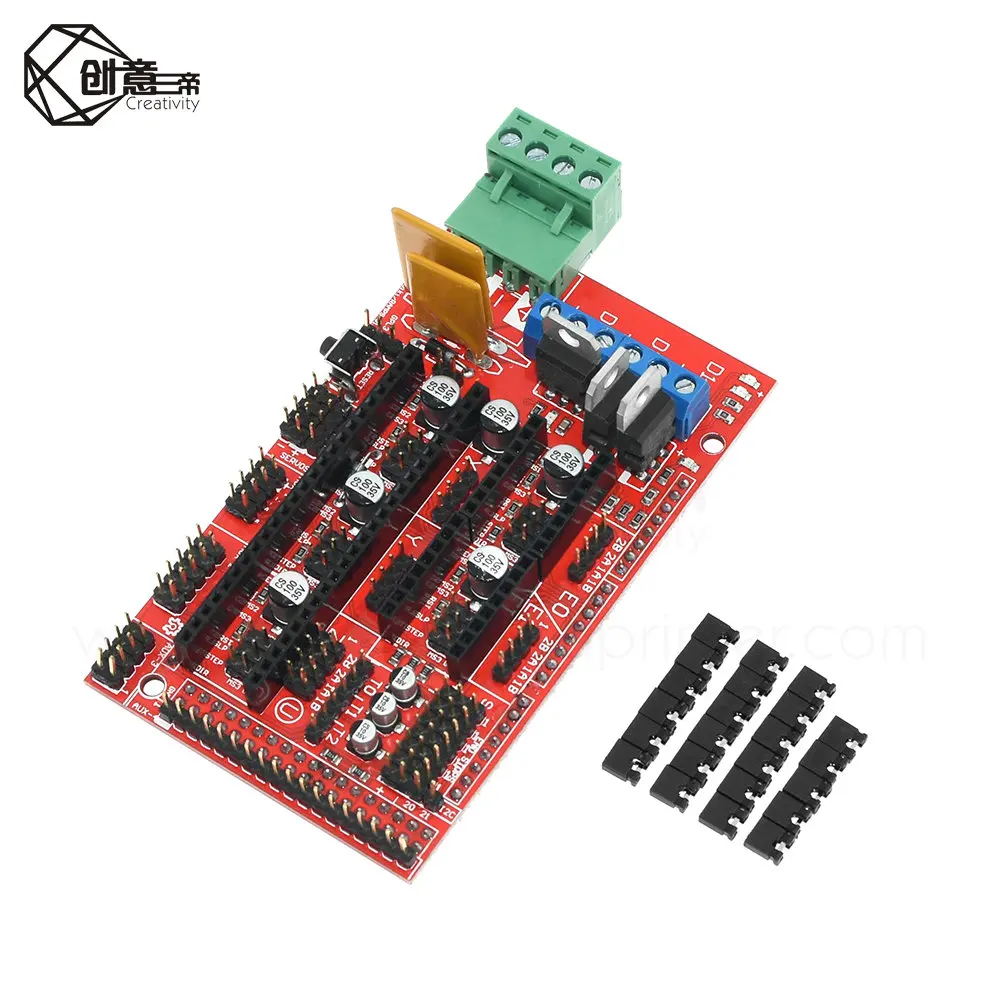 2. Есть выходы нагревателя и вентилятора MOSFET и 3 интерфейса термистора 3,5A дополнительная Безопасность и защита компонентов fusion 4, Подогреваемая кровать контролирует дополнительные предохранители 11A 5, применяется к 5 шаговым дискам 6. Конструкция разъема может быть легко заменена или удалена для будущего дизайна 7, контакты I2C и SPI доступны для будущего расширения 8. Серворазъемы используются для подключения ограничительных остановок, двигателей и диодов, излучающих светильник. Эти разъемы покрыты золотом и имеют Номинальный ток 3A, что очень компактно. 9, светодиодный светильник, когда нагреватель выводится 10. Выберите 2 двигателя для подключения к Z Prusa Mendell Ramps 1,4 У него есть картезианские Роботы и правила экструдера. Расширен для управления другими аксессуарами. Нагреватель/MOSFET выходы и три вентилятора термистор цепи. Интеграция дополнительной защиты 5A и компонентной защиты Контроль дополнительного нагревательного пласта 11A предохранитель Подходит для 5 шаговых плат Pololu Контактный разъем для доски Pololu, поэтому их можно легко заменить или удалить для будущих дизайнов. I2C и SPI контакты для дальнейшего расширения. Подключен ко всем MOSFET PWM pin универсальность. Соединитель сервопривода используется для подключения к концевой остановке, двигателю и диодам, излучающим светильник. Эти разъемы Позолоченные, номинальный ток 3A, очень компактный. На sd-карте для добавления-теперь доступен от Kliment - Sdramps Светодиодный индикатор на выходе нагревателяRamps 1,5