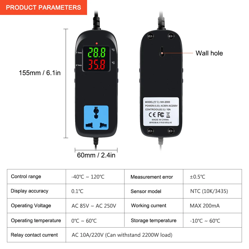 Диапазон управления: -40 ~ 120 градусов (-40 ~ 248 по Фаренгейту)