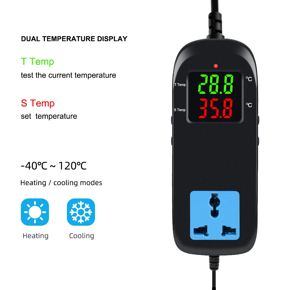 Этот профессиональный регулятор температуры используется для теплица для овощей, бытовые резервуары для воды, холодильник, промышленный чиллер, больер, аквариум, аквакультура и другие системы с контролем температуры.