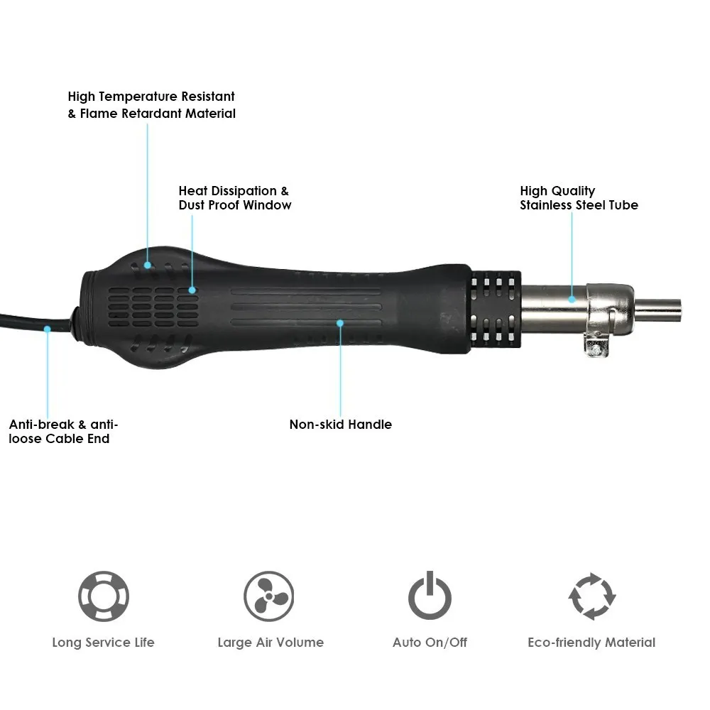 Эта высококачественная паяльная станция небольшого размера идеально подходит для пайки, распайки и обслуживания телефона. Быстрый нагрев, он может начать работу через минуту.