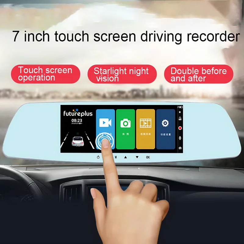 1. Full HD dash cam: одновременная запись с супер высоким разрешением 1080P FHD объективом, и 7 ”/5'' большой ЖК-экран обеспечивает более четкое видео.