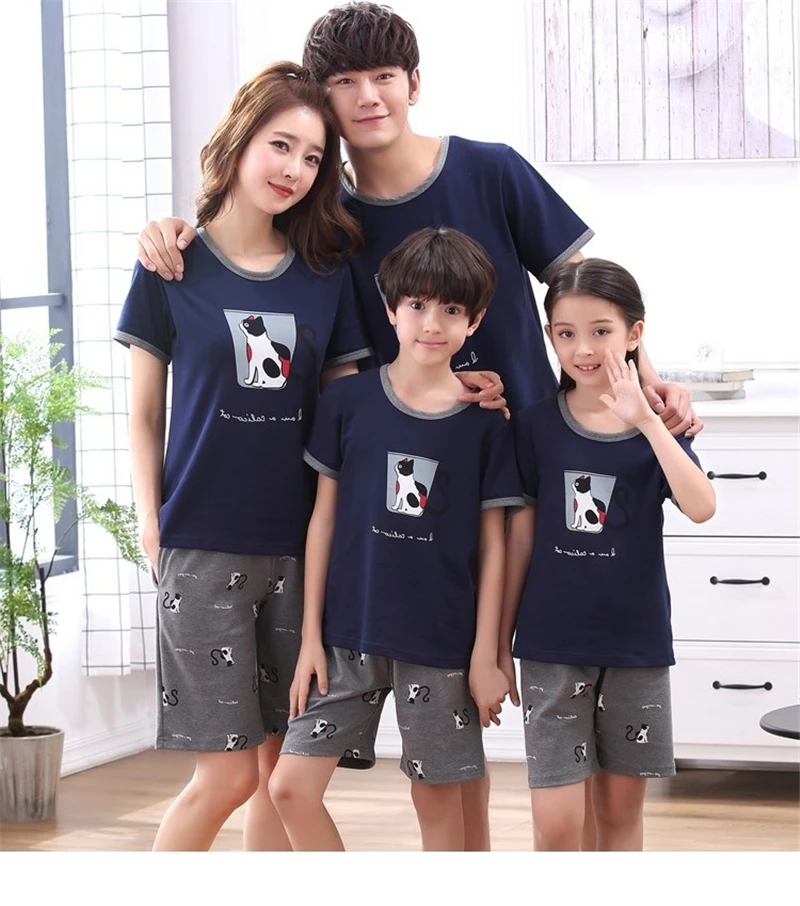 Parent-child pajamas short-sleeved cotton summer family suit children pajamas female mother father child home service sleep wear
