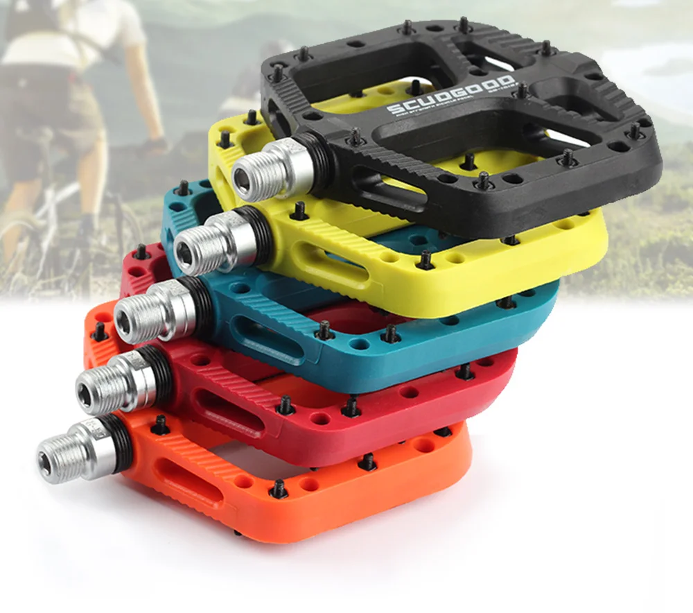 Описание продукта: Название: велосипед педали Цвета: черный/оранжевый/красный/синий/желтый Вес: прибл. 415 г/пара Материал: нейлоновое волокно Особенности: 10 штифтов на одну сторону для улучшенного сцепления, длительного комфорта езды и эффективности. Прочный, прочный хроммольный шпиндель. Самая большая педаль, которую вы когда-либо видели, около 200см2 9/16 дюймовая нить, подходит для большинства велосипедов. Герметичная конструкция подшипника, прокатка более плавно
