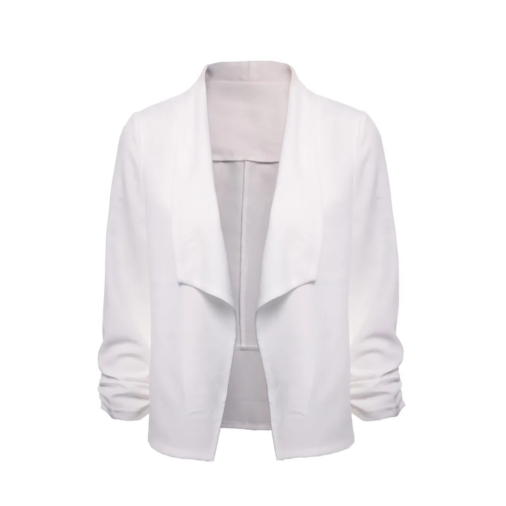 Женский блейзер с рукавом 3/4, короткий кардиган с открытой передней частью, пиджак, офисное пальто для работы