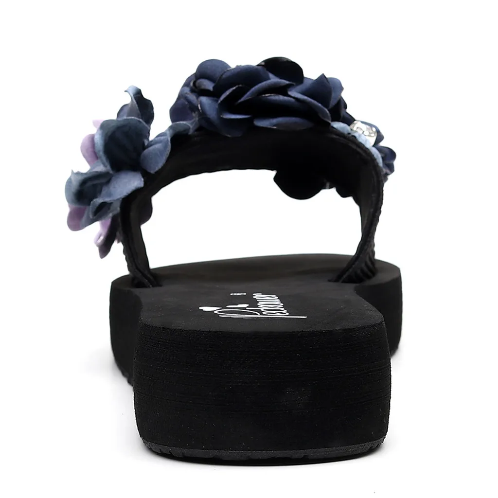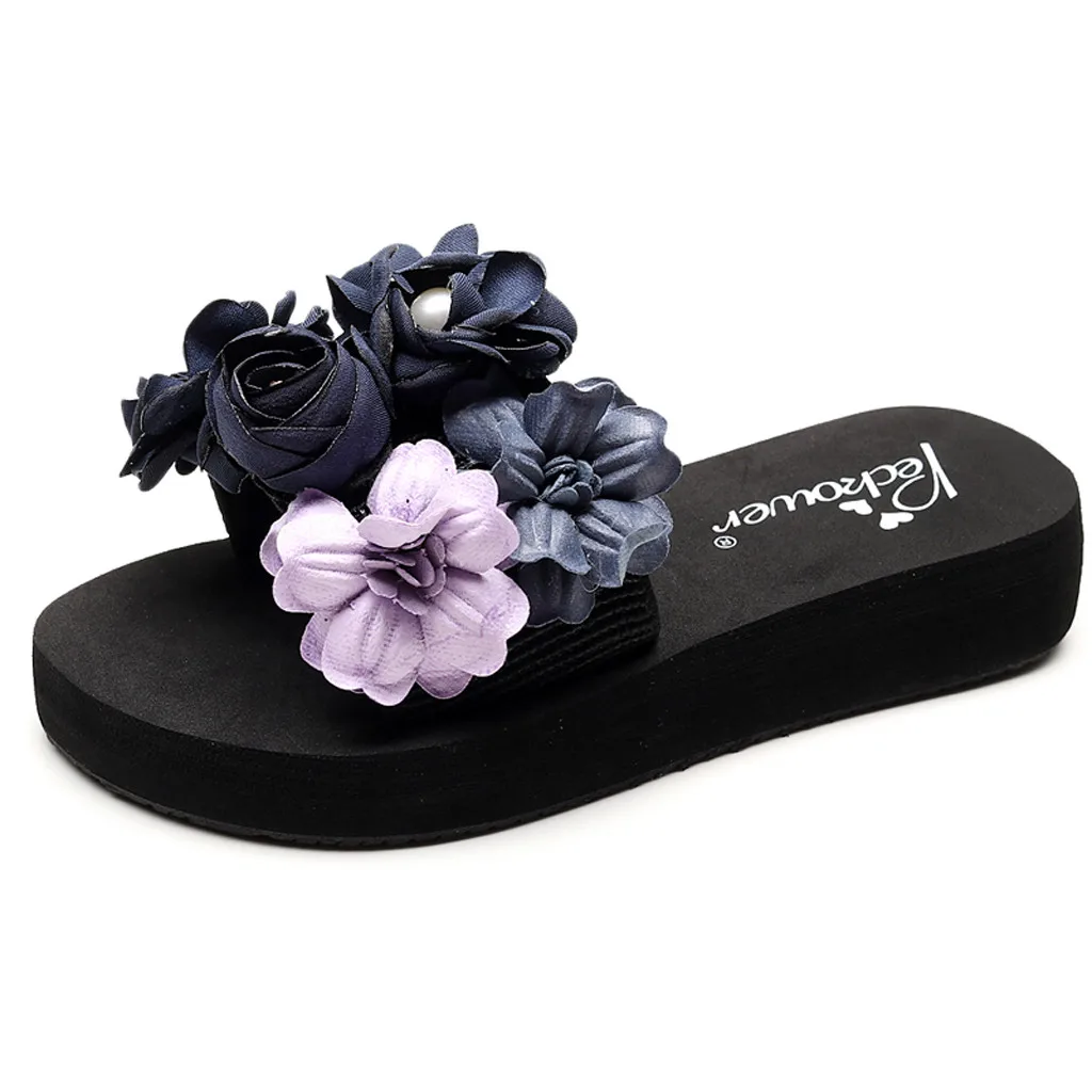 Женские сандалии на танкетке с цветочным узором в богемном стиле; шлепанцы; пляжная обувь