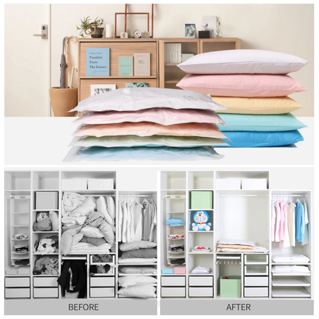 Вакуумный мешок для хранения изготовлен из PA + PE, который является экологически чистым. Одна сторона прозрачна, что вы можете увидеть то, что вы храните. Сумка достаточно плотная и отверстие насоса имеет 2 крышки, которые делают его долго использовать.