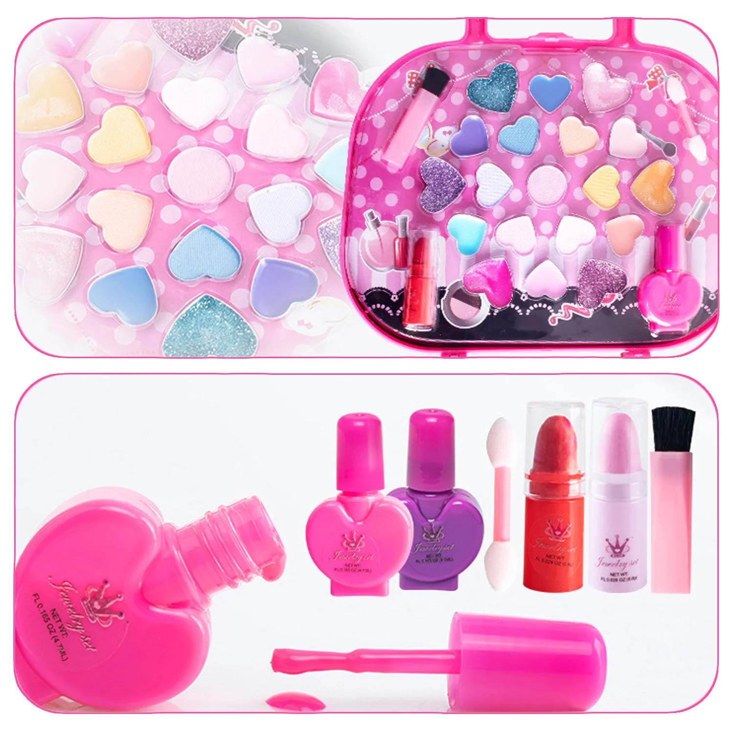Коллекция сказочных принцесс:Настоящий набор для макияжа для девочек-идеальный подарок для вашей принцессы, маленьких девочек. Красивый розовый Внешний чехол для путешествий, легко носить с собой.