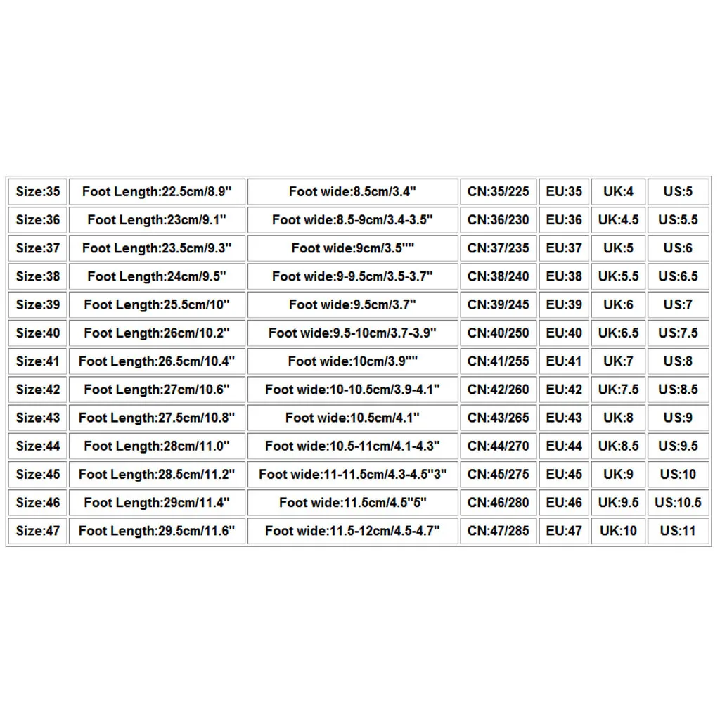 Полезные советы:Различные стили обуви, пожалуйста, выберите размер в соответствии с типом вашей стопы.