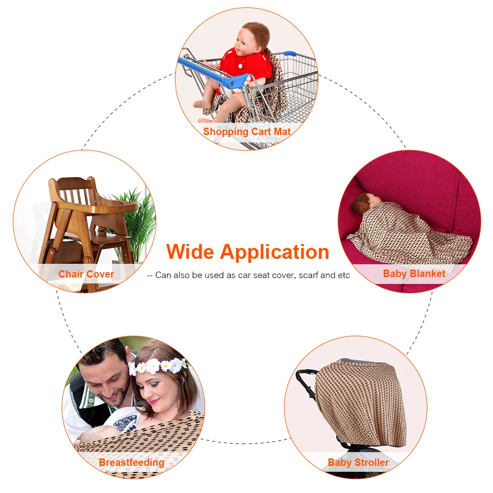 Многоразовое использование, широко используется в качестве чехла для кормления, навеса для автомобильного сиденья, чехла для корзин, чехол для детской коляски, чехол для детского стула, светильник-одеяло для ребенка и многое другое.