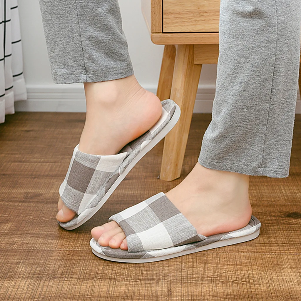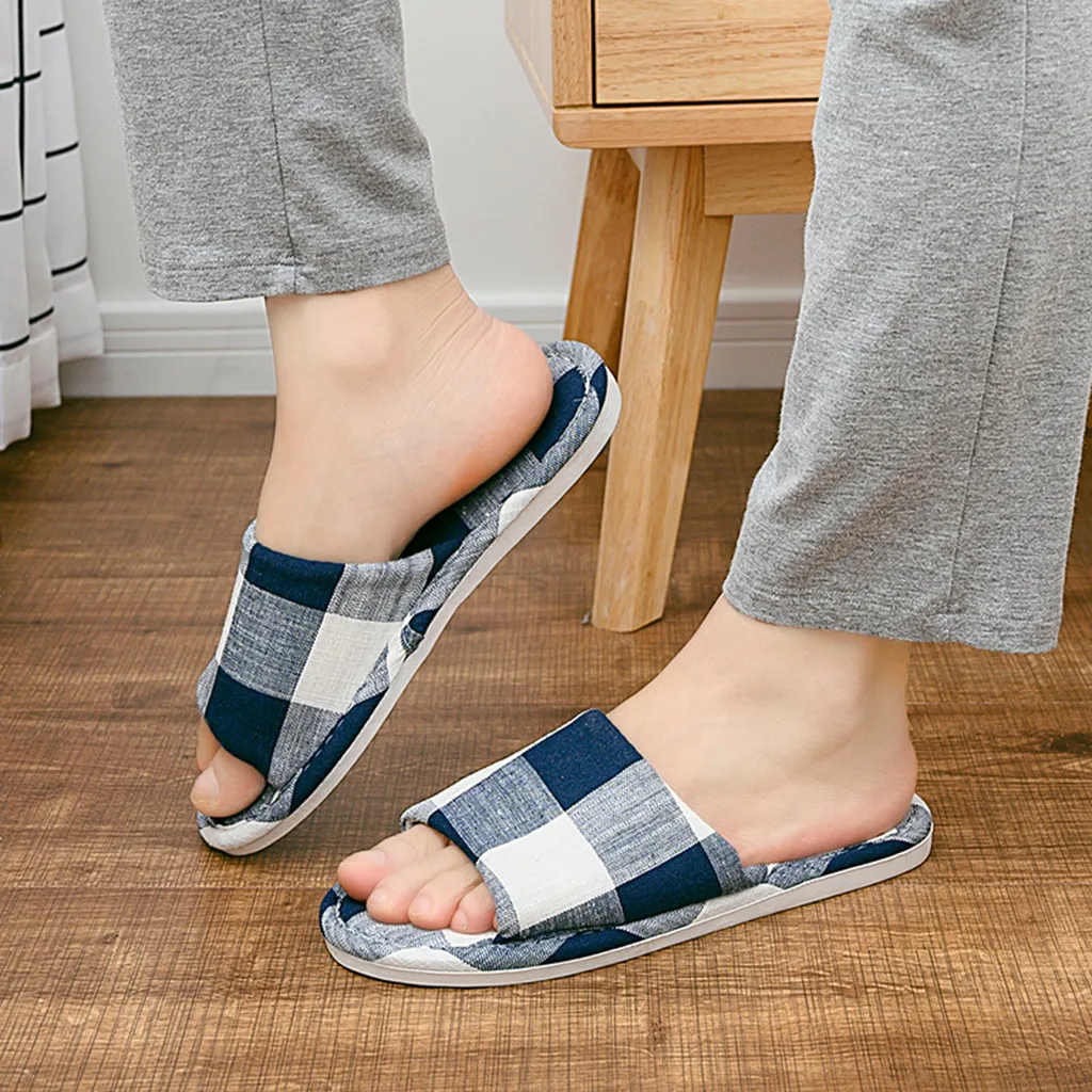 Мужские модные повседневные Нескользящие льняные домашние тапочки с открытым носком