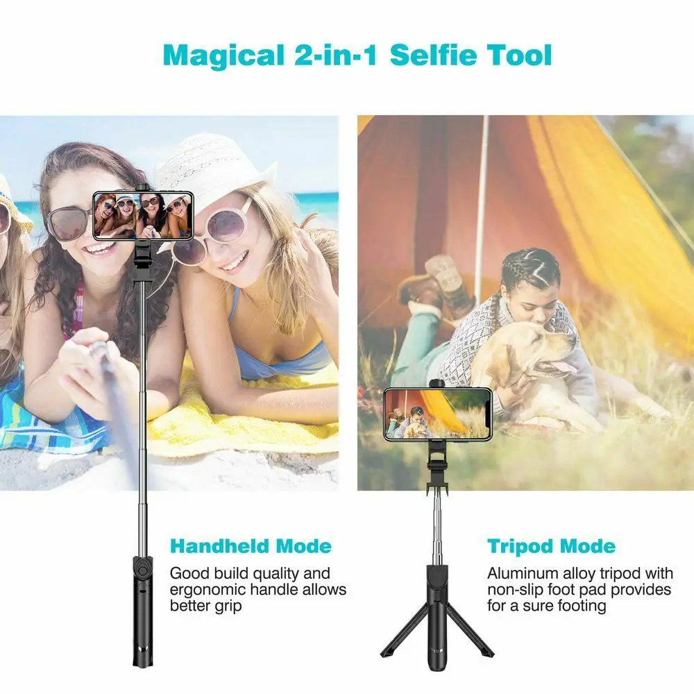 Штатив-палка для селфи 2 в 1 со встроенным беспроводным пультом ДУ, идеально подходит для самостоятельного или группового селфи s.