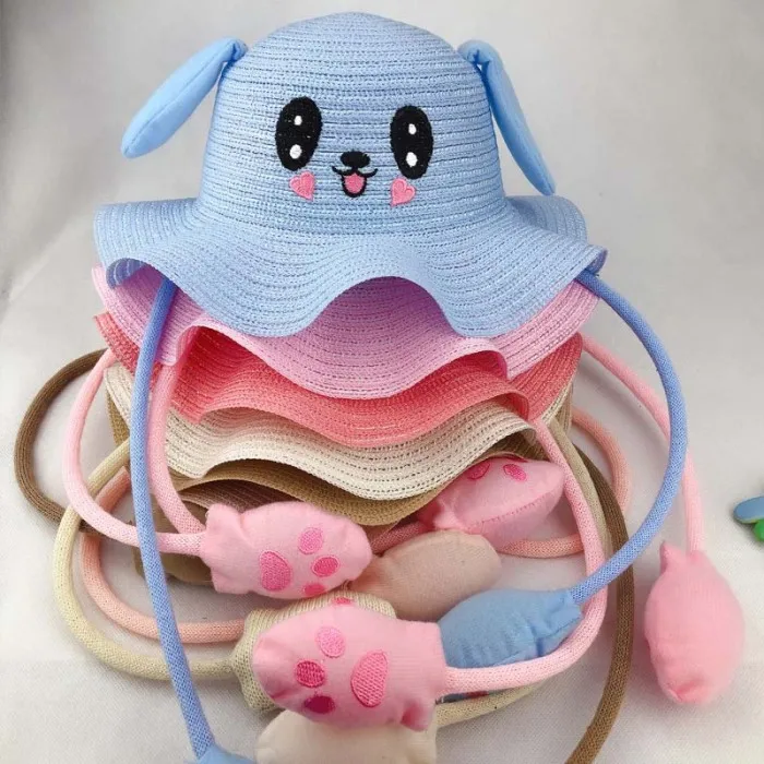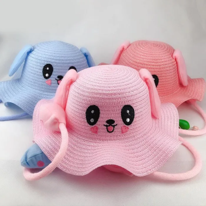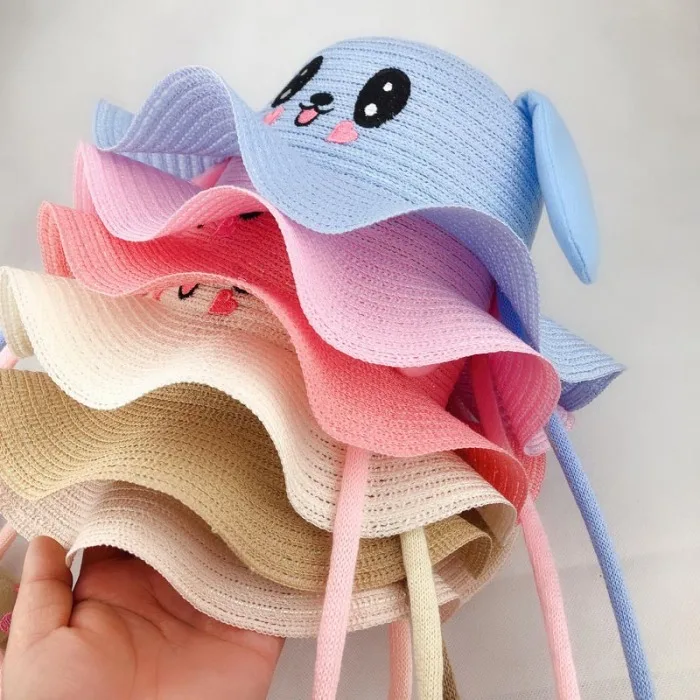 Летние шляпы от солнца с милыми мультяшными заячьими ушками для танцев, детская соломенная шляпа в рыбацком стиле для мальчиков и девочек FDX99
