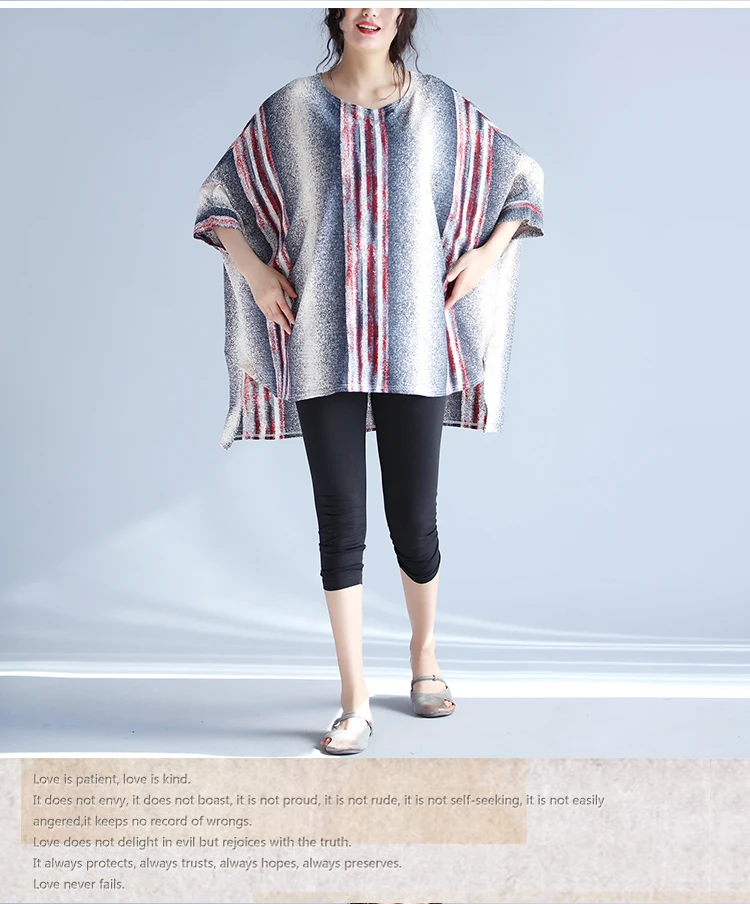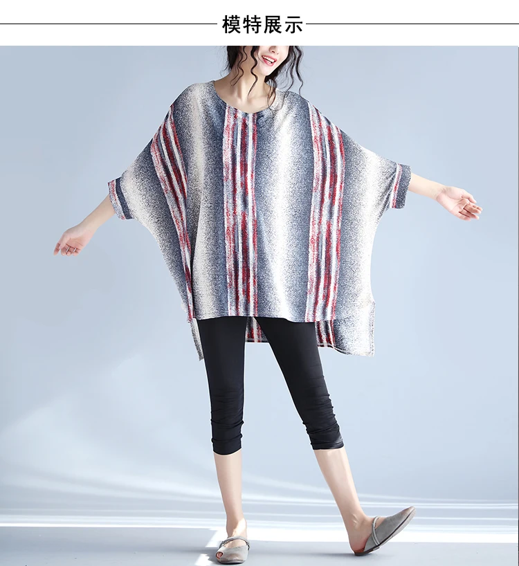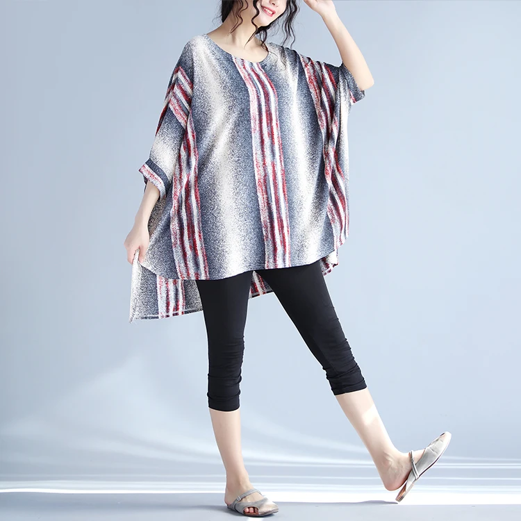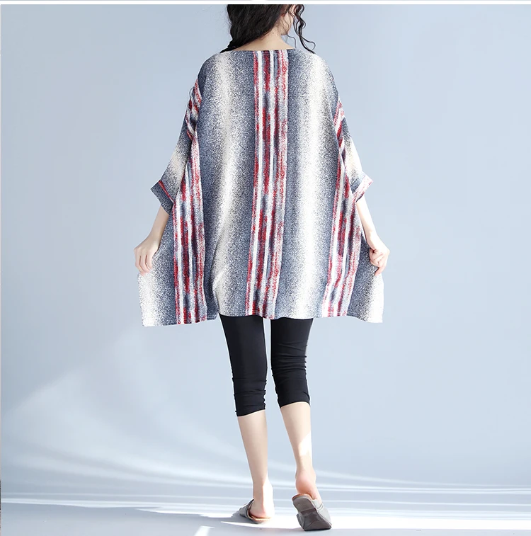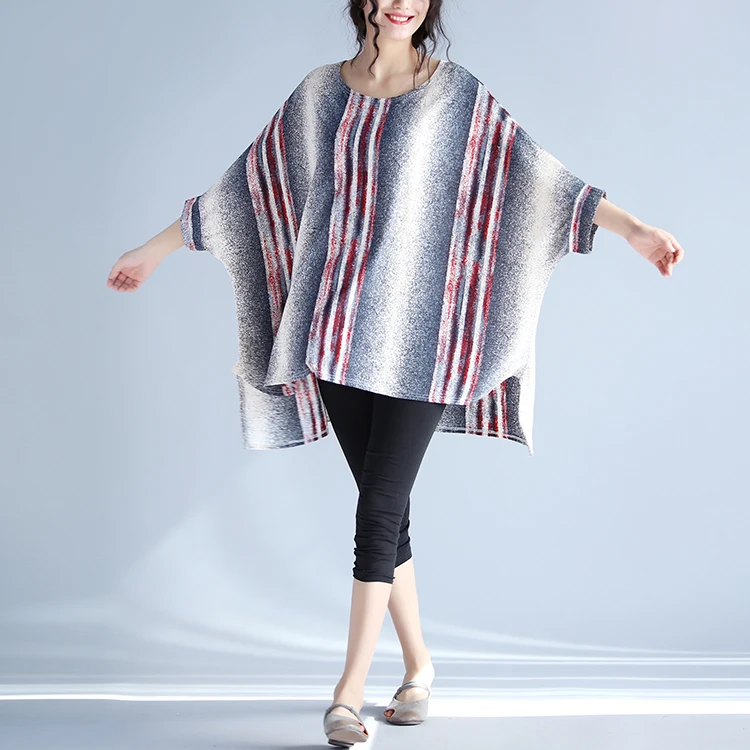 Плюс Размеры 4xl Для женщин топы с рукавами-реглан с длинным рукавом Женские повседневные блузки свободные хлопчато-бумажное, Полосатое мешковатая туника с круглым вырезом Блузки