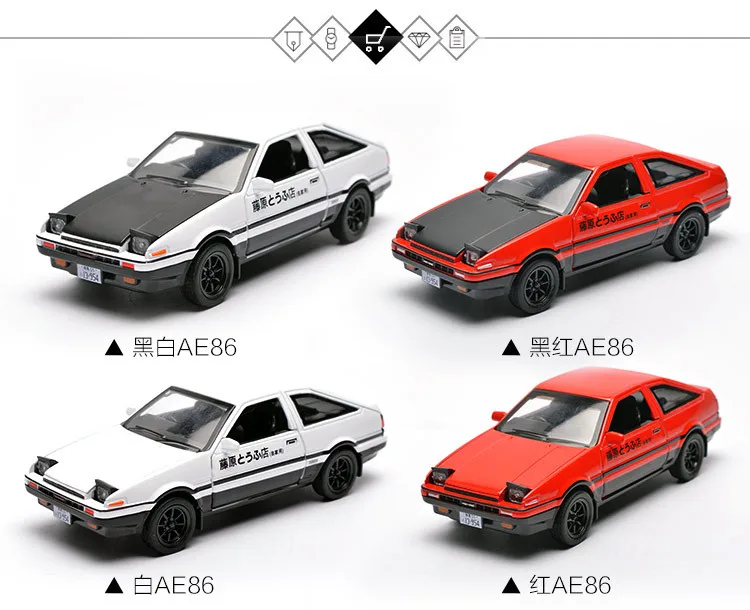 1:28 Toyota AE86 Alloy Car Model With Pull Back Sound Light For Boy Toys Free Shipping Material: Alloy,Plastic Scale:1:28 Size:15cmX5.8cmX5.5cm Color:Red White Package includes: 1pc Alloy Car Model