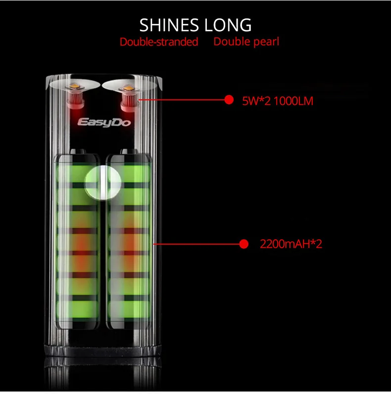 4 режима освещения (время работы): ближний свет (30h), нормальный свет (15h),