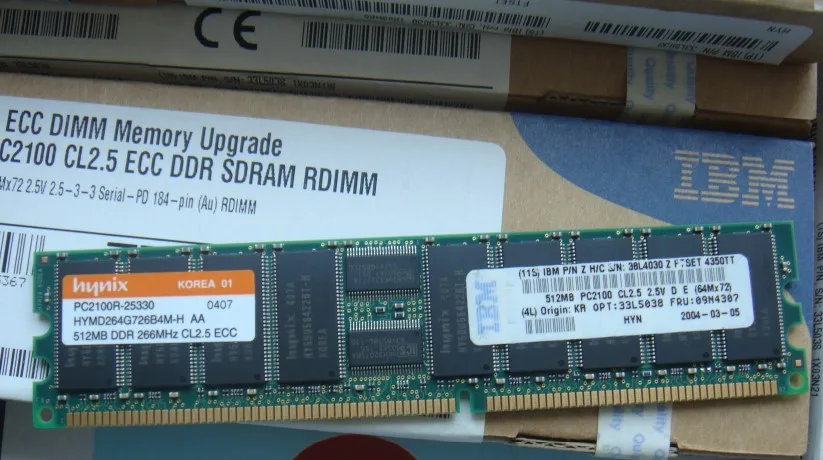 IBM 33L5038 ECC 38L4030 PC2100R-25330 HYMD264G726B4M-H AA 512MB DDR 266MHz CL2.5 ECC 512MB PC2100 CL2.5 2,5 V OPT 33L5038 FRU 09N4307 фактическая фотография новая и оригинальная хорошая часть