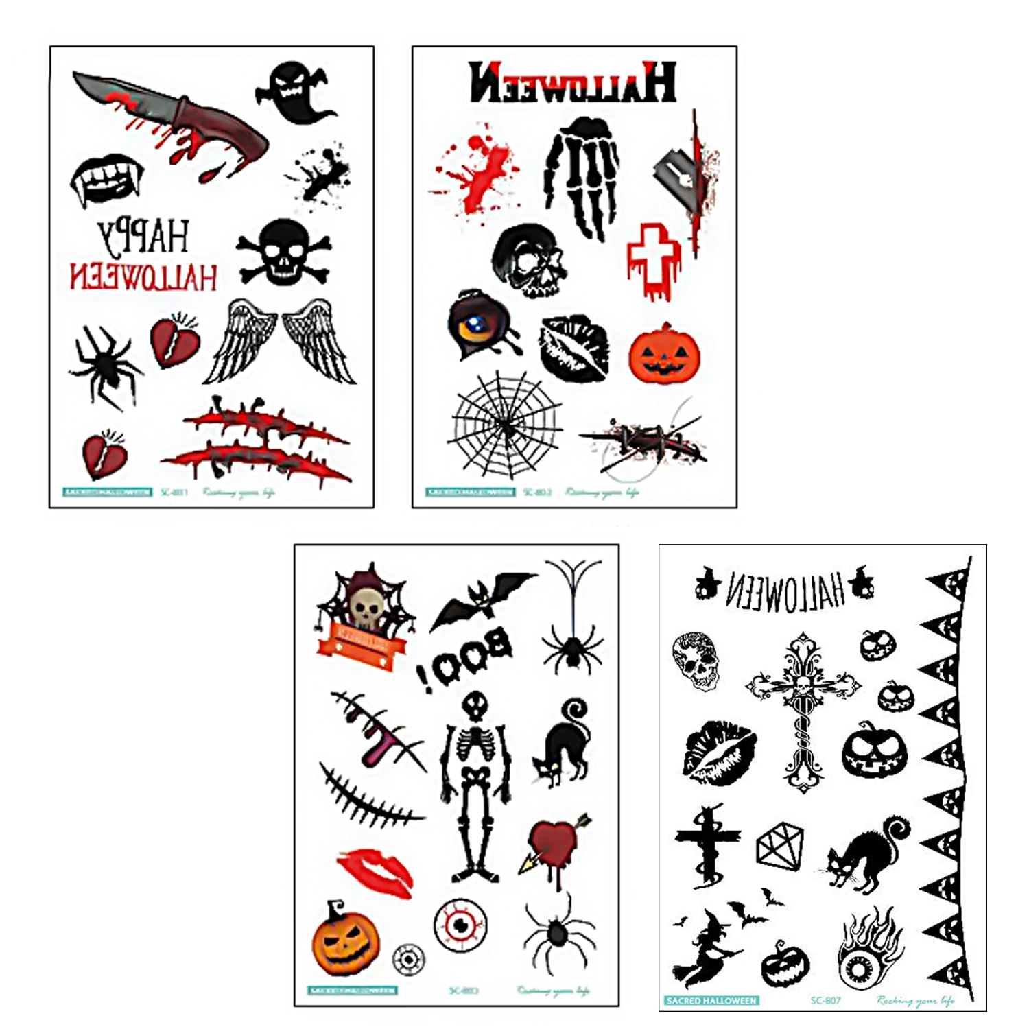 Набор включает в себя 4 листа Хэллоуин тема татуировки наклейки, могут быть использованы на лицо, грудь, спину, руки или руки, позволяют выделиться из толпы!